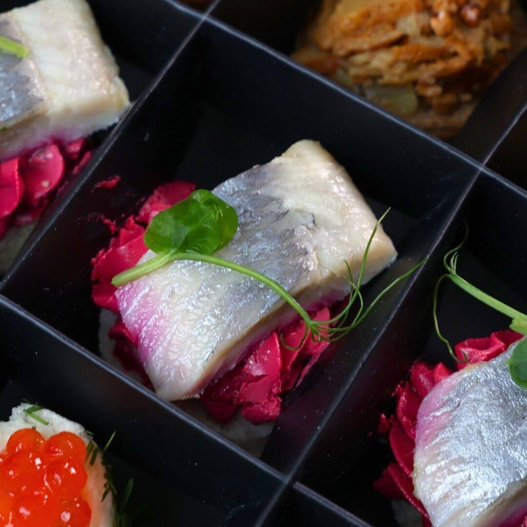 3. Śledź matias / twarożek / pieczony burak, 5 szt.